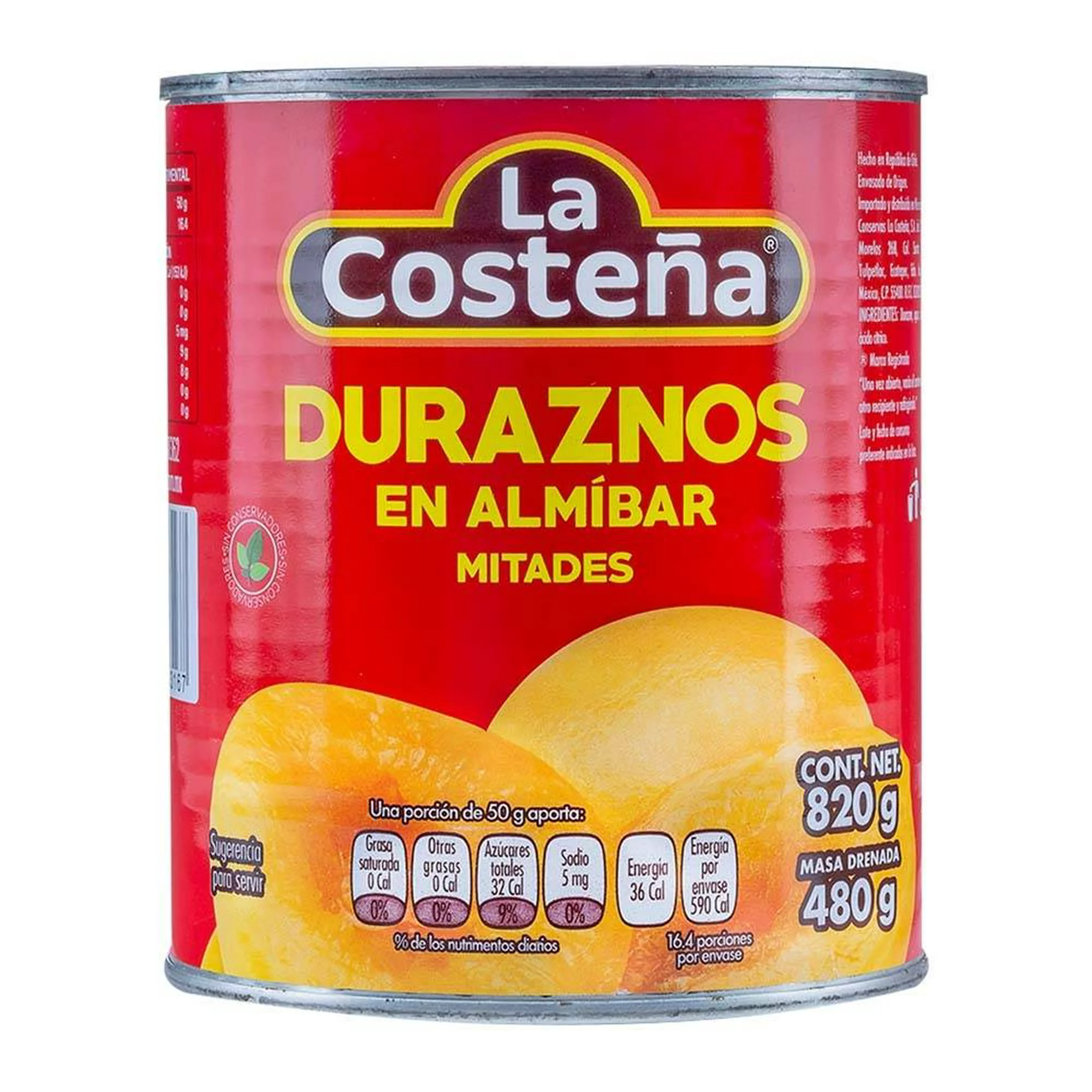 / Duraznos en almibar La Costeña en mitades 820g.